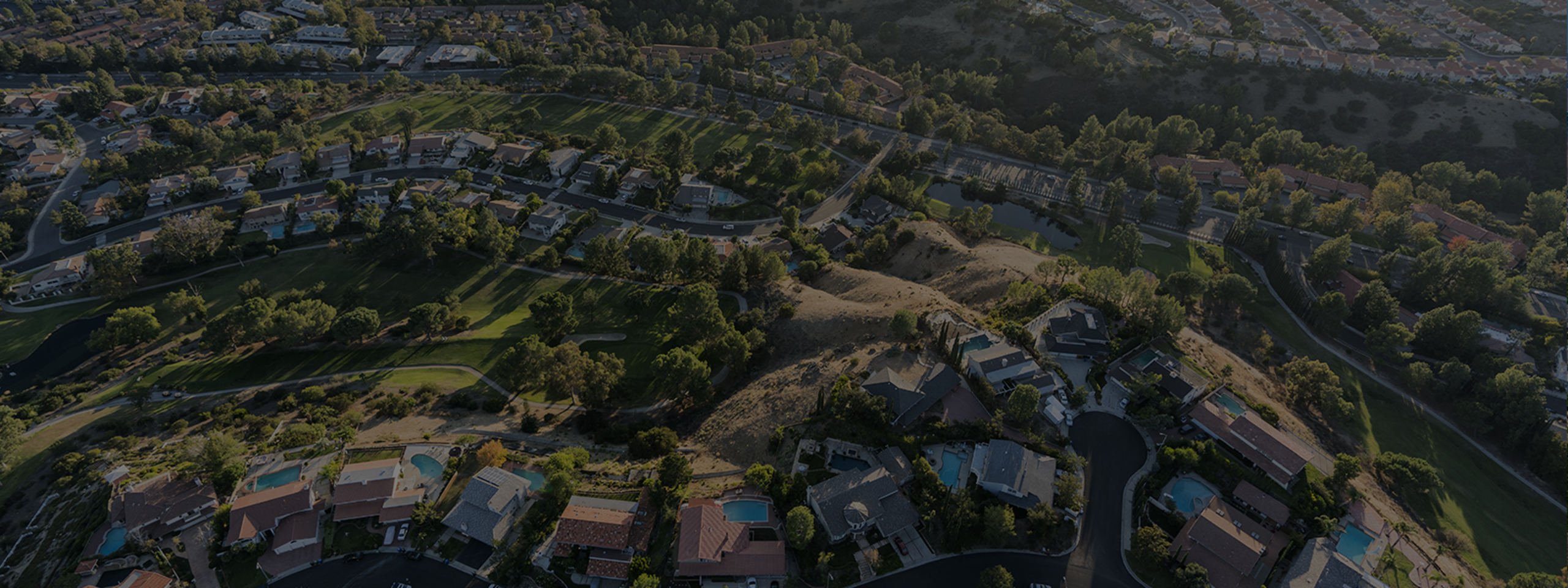Coastal community nestled in the hills dotted with Spanish tiled roofs.